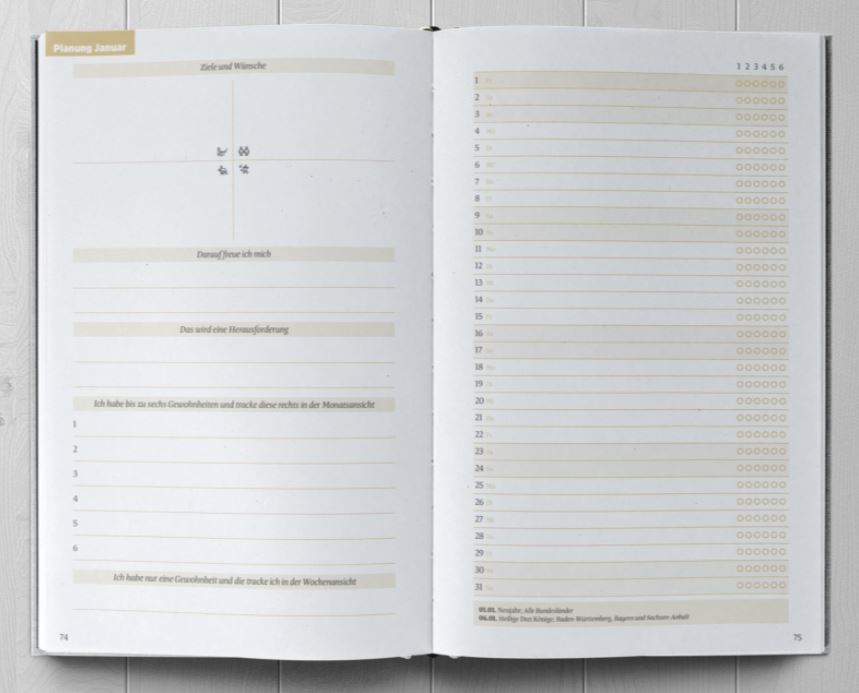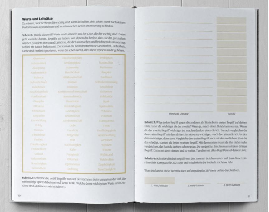 as Buch, das dein Leben verändert! Ein guter Plan 2021 ist ein ganzheitlicher Terminkalender für mehr Achtsamkeit und Selbstliebe. Ganz ohne Postkartenweisheiten und gegen den wachsenden Zwang zur Selbstoptimierung. Lerne wieder auf deine Bedürfnisse zu achten, behalte Burnout-Faktoren im Blick und hol dir die Kontrolle über dein Leben zurück. Das Original seit 2015 und Deutschlands beliebtester Achtsamkeitskalender mit über 250.000 verkauften Exemplaren. Wir glauben: Das wichtigste Buch in deinem Leben sollte über dein Leben sein!